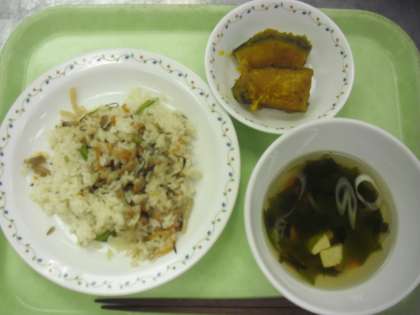 五目ごはん 牛乳 かぼちゃの含め煮 すまし汁