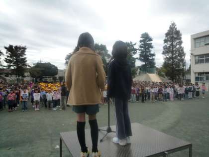 今月は、4年生が全校スピーチをします。今日は2人が、総合の時間に矢沢川や等々力渓谷を歩いたりしたときのことについて、調べたことや発見したことなどを上手に分かりやすく発表することができました。4年生は、地域のことについてよく調べていますので、来週の発表もとても楽しみです。
