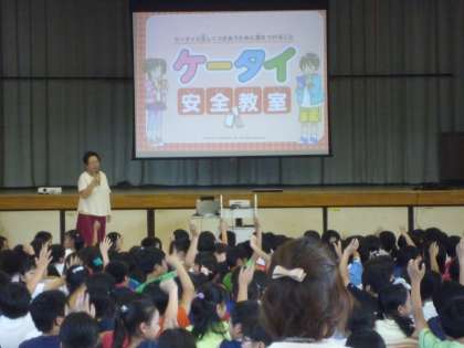 学校公開の金曜日、5,6時間目はセーフティ教室でした。下学年は、玉川警察署スクールサポーターの方に、「いかのおすし」で不審者から身を守ることを学びました。また、上学年は、NTTドコモの方に、ネット、携帯に関わるサイバー犯罪防止について学びました。保護者の方も一緒に参加して下さいました。その後、地域、保護者、教員を交えて情報交換、意見交換会をもちました。お子さんにスマホなどをお子さんに与えたならば、家庭で約束したことを、最後まで必ず守らせることが大切であるとのお話でした。