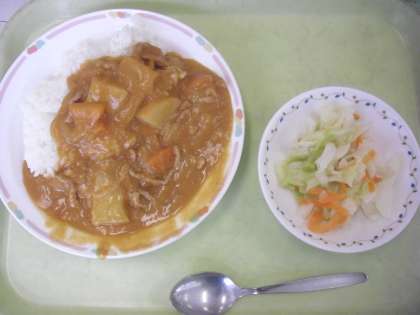 ハッシュドポークライス 牛乳 キャベツサラダ