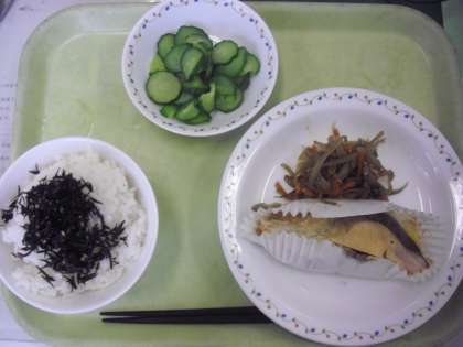 ごはん 牛乳 魚の味噌マヨネーズ焼き きんぴらごぼう きゅうりの一塩