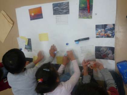 今日の6校時、2年2組の林学級で、「読書力の育成」をテーマにした国語の授業研究会が行われました。単元は「さけが大きくなるまで」という説明文教材でした。サケの一生を教科書からしっかり読みとり、他の資料を使ってさらに調べ、すごろくにまとめて、発表する学習でした。子どもたちがサケのすごいところを教科書以外からも調べ、発表している内容がとてもよかったです。2年2組のみんなががんばった授業でした。