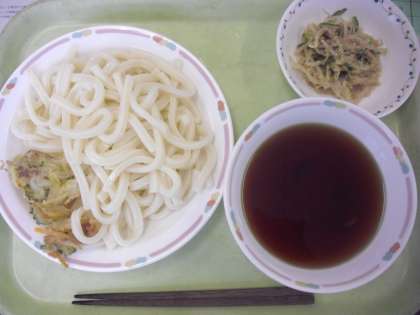 冷やしつけ麺 牛乳 ゴーヤ入りかき揚げ ゴマ酢和え