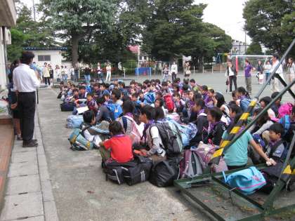 今日から5年生は2泊3日の川場移動教室です。朝7時前から荷物を持って集まりだした子どもたちも、集合時刻の7時には全員揃い、出発式を行いました。一人の欠席もなく、元気に出発しました。みんなで協力し合い楽しい思い出をたくさんつくってきてほしいですね。