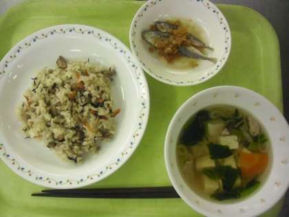 ひじきごはん 牛乳 鯵の南蛮揚げ 豆腐汁