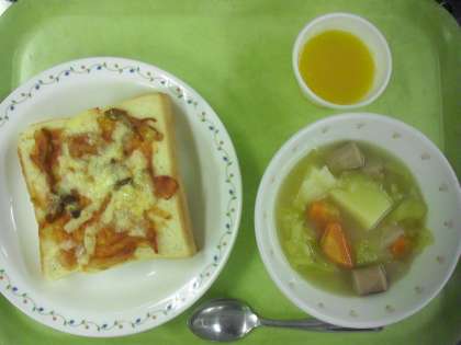 ピザトースト 牛乳 ポトフ みかんゼリー