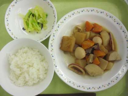 ごはん  牛乳  いかと大根のうま煮  きゃべつの塩昆布かけ