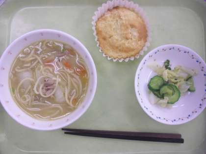 味噌ラーメン 牛乳 野菜のごま風味 りんごマフィン