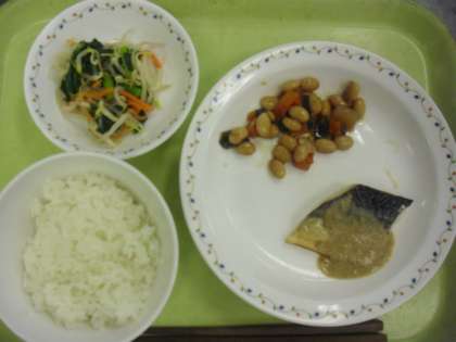 ごはん 牛乳 鯖のごまだれかけ 青菜のお浸し 五目豆