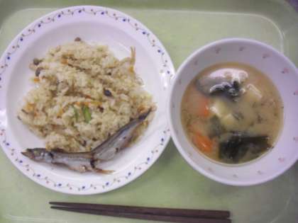 きのこご飯 牛乳 焼きししゃも 味噌汁