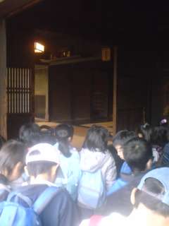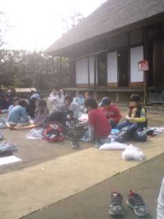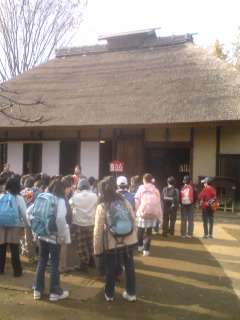 楽しみにしていたお弁当の時間です。昔の民家の前庭でお友だちと仲良く食べました。その後民家を見学しました。