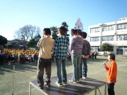 2年生の4人がとても上手に、全校の前でスピーチをしました。