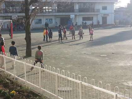 昨日と比べると暖かさを感じる朝、校庭でのびのび遊ぶ子どもたちがたくさんいます。