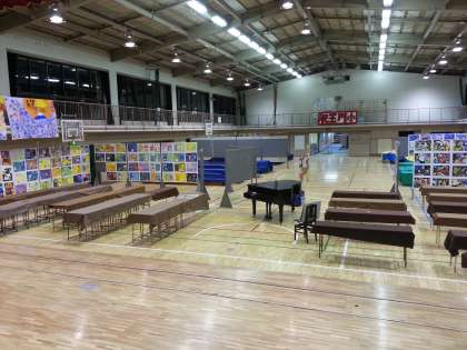 6時間目、6年生が展覧会会場が設営をしてくれました。机や雛壇、パネルを運び、ならべる作業は大変でした。