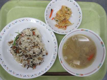 ひじきごはん 牛乳 フーイリチー さつま汁