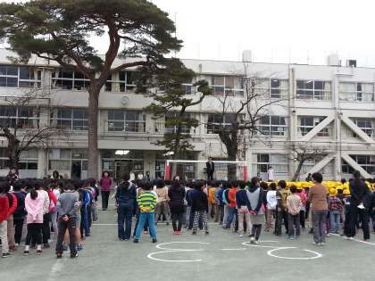 今朝は全校朝会からスタートです。寒いですが、みんなしっかりお話を聴いています。