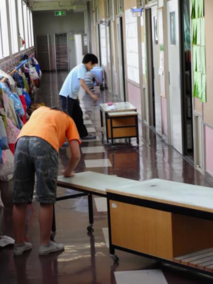5月7日5校時の委員会活動の時間、給食委員会の子どもたちが、各学級の給食の配膳台を洗剤を使ってきれいに拭いてくれていました。どの子も一生懸命に!ほとんど口も開かずに黙々とやっていました。「えらいなあ」とその活動ぶりを見ていたら、4年生の教室から出てきた係活動をして残っていた女の子が、ランドセルを抱えて廊下に出たとたん、「ありがとうございます。」と言って、ペコンとお辞儀をして帰っていきました。言われた子はその声に気づかなかった様だったので、「ありがとうとお礼を言われたよ。」と言ってあげると、「えっ、そうなんですか」と言ってニコッとして下を向いてさらに力を入れて拭き始めました。