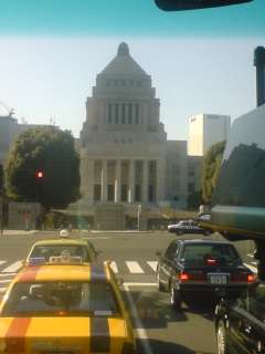 国会議事堂に着きました。残念ながら、見学は簡単見学ということで、会議場もさっと通り抜けるだけでした。でも、各党の会議室の前を通ったり、正面玄関を覗いたりすることもできました。