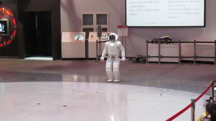 二足歩行ロボット「アシモ」のかわいらしい動きに目を輝かせていました!