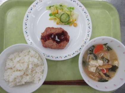 ごはん 牛乳 ハンバーグ コーン入りフレンチサラダ 味噌汁