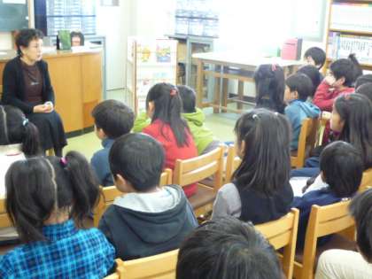 今日の3校時と5校時に、すはなし会の小池さんが、3年生の子どもたちにお話を素読みしてくださいました。子どもたちは小池さんの話が始まると、スッと静かになって聴き入っていました。子どもたちが本当に本を読むことが好きになったようです。