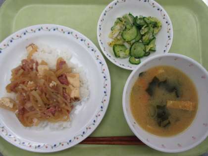 豚丼 牛乳 ゆかり和え 味噌汁