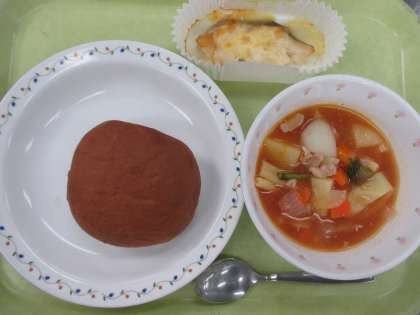 ココアパン 牛乳 メルルーサのチーズ焼き ミネストラスープ