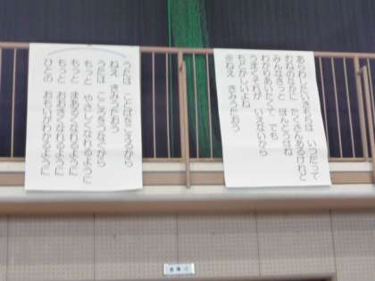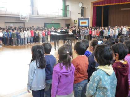 新型インフルエンザの影響で、体育館に全員が集まって歌うことがなかなかできなかったのですが、久しぶりに今日の朝、開くことができました。「ねえ、歌おう」というすばらしい歌詞を、2月に歌うための練習として全員で歌うと、心が一つになってとてもいい気持ちになりました。