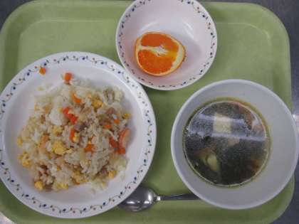 チャーハン 牛乳 わかめスープ 果物(清見オレンジ)