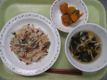 五目ごはん 牛乳 かぼちゃの含め煮 すまし汁