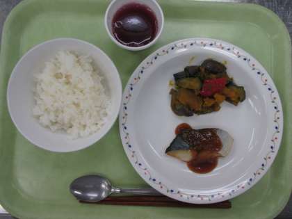 ごはん 牛乳 鰆の梅肉焼き 夏野菜の南蛮かけ あじさいゼリー