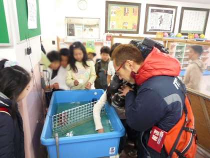 2/15 ITSCOMがアオウミガメの取材に来ました。
