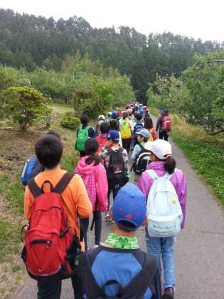 いよいよ最終日、村めぐりです。今日は涼しくて快適です。これからりんご園まで歩きます。