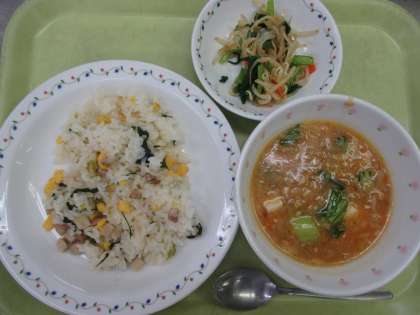 青菜のチャーハン 牛乳 ナムル 麻婆汁