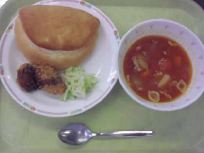 ミルクパン 牛乳 魚のフライ ゆできゃべつ ミネストローネ