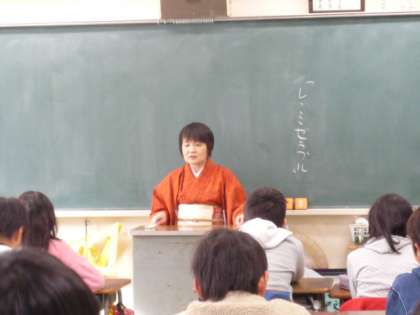 今日は5年生の各学級で、神門久子さんの講談を聴く会がありました。日本の伝統話芸である講談を直接聞いたことのある子どもはいませんでしたが、テレビで見たことがある子が2人くらいいました。こどもにとっては、初めて体験する芸能でしたが、しっかり話を聞いて引きづり込まれていました。