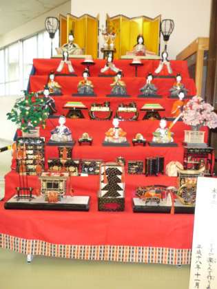 玉川小学校では、明日の桃の節句に合わせて、1週間前から本校舎と北校舎の2階の渡り廊下に、5年前の本校教職員たちの手作りのひな人形を飾っています。子どもたちは、その前を通る時、足を止めて見入っています。心がなごみます。