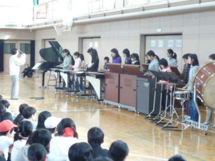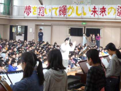 朝、体育館で音楽クラブのクラブ発表会がありました。1週間早朝練習を積み重ねて、発表に臨みました。舟山先生の指揮のもと部員が呼吸を整えて、2曲ともとてもしっかりと演奏ができました。聴いている子どもたちもとてもいい姿勢で聴くことができました。