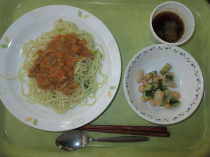 ジャージャー麺 牛乳 ビーンズサラダ 黒蜜寒天