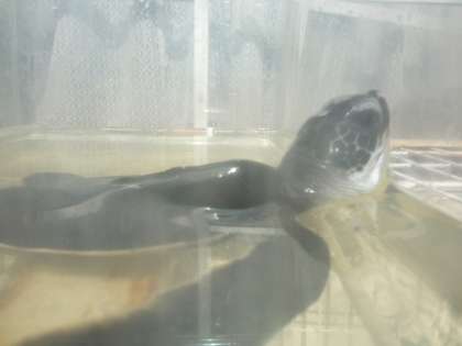 今日は、久しぶりに天気がいいので、主事さんたちにお願いして(?)ひなたぼっこをさせてもらいました。お日さまの光を浴びるのは生まれて初めてかも?とてもいい気分でした。こうらの汚れをきれいにとれて、すっきり。お日さまを浴びてまたちょっと大きくなるかも。