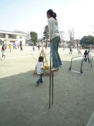 昼休みの子どもたちの様子です。暖かい陽気にたくさんの子が元気に遊んでいます。竹馬でこんな高さで遊んでいる4年生がいました。少しずつ少しずつ練習を重ねてここまでこれるんです。子どもの力ってすごいです。