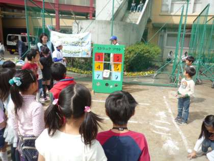 玉小、中小、玉中の三校のおやじの会やPTA、関係団体が共催して、「ふれあいフェスティバル」が玉川中学校の校庭でにぎやかに行われました。模擬店が出たり、楽しいゲームがあったり、発表会があったり、にぎやかに行われました。中学生の野球部などがお手伝いしてくれて、小学生とのふれあいも見られました。