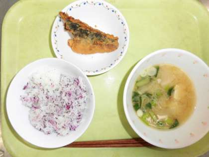 ゆかりごはん 牛乳 鯖の竜田揚げ 味噌汁