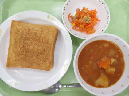 きなこ豆乳トースト 牛乳 トマトシチュー にんじんサラダ