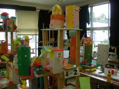 4・5・6年生合同図工作品として巨大な町が図工室に現れました。