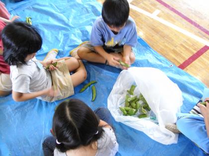 今日の1校時、2年生が食育の一環として、きょうの給食の「そらまめご飯」のそらまめ剥きをお手伝いしてしてもらいました。そらまめ(空豆)という名前の由来を聞いた後、全校分の空豆の皮むき作業を行いました。ほとんどの子が初めての体験で「中が柔らかい。ふわふわしている。」「大きい粒が入っている。5個はいってた。」それぞれが楽しそうにお手伝いしてくれました。給食の「そらまめご飯」は、当然のように、2年生は完食しました。