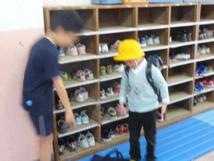 今週の月曜日から、毎朝6年生が1年生の朝の時間のお世話をしてくれています。昇降口での靴の履き換え、教室でのランドセルから道具を仕舞うお手伝い、トイレの案内、遊びの相手等々、進んでやってくれています。自分たちの弟、妹のつもりで、本当にやさしく接しています。しばらく最高学年として、よろしくお願いします。