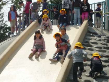 待ちに待っていた1年生の中休みデビュー!1年生は、広い校庭でいろいろな遊具に夢中!中でも力山は一番の人気で、あっという間に子どもたちでいっぱいになりました。しばらくは1年生が優先で遊べることになっています。6年生のお姉さんと一緒に滑ったり、お友達と滑ったり、楽しんでいました。