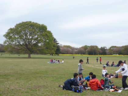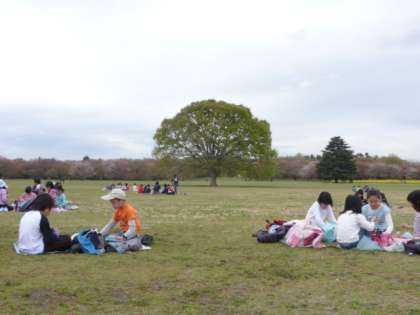 広々とした原っぱでしょくじしたり、あそんだり、・・・・・。