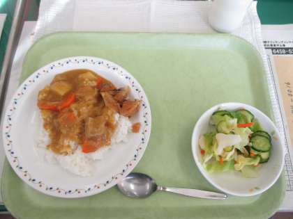 カレーライス 牛乳 福神漬 野菜の甘酢かけ